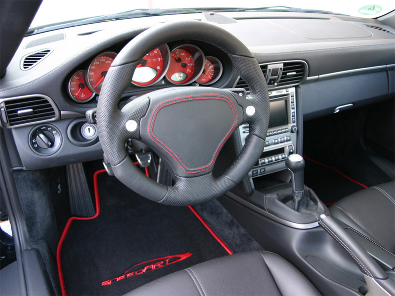 Komplettumbau auf Aerodynamik-Paket Typ BTR-XL EVO vom 997 Turbo 2. Generation incl. LED-Lichter und Anpassung Auspuff-Endrohre. Power-Kit mit 385 PS inkl. Sportauspuffanlage. Mehrteiliger LSC-FORGED Radsatz in 8,5 und 12x20“. Sport-Tieferlegung. Exklusives Sport-Lenkrad, rote Ziffernblätter, Teppichsatz, uvm.